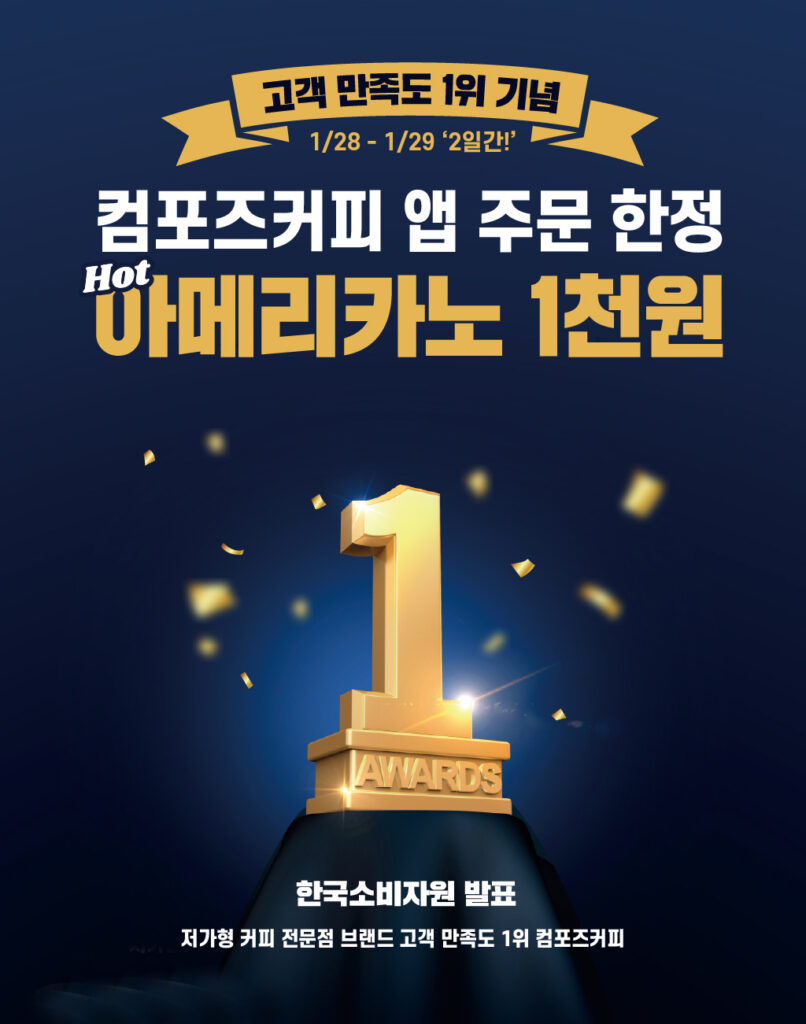 아메리카노 커피를 단돈 1000원에 마실 수 있는 기회가 생긴다. 오는 28일과 29일 이틀간 컴포즈커피 전국 체인점에서 동시에, 한시적으로 진행되는 이벤트로, ‘저가형 커피 전문점 브랜드 만족도 조사’ 종합 만족도 1위 기념으로 열리는 고객 감사 프로모션이다.
