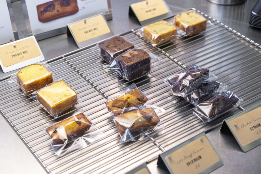 A. 효율적이면서도 퀄리티를 높이는 방식을 택했습니다. 매장 운영에 최적화된 구성을 위해 자사 온라인몰인 ‘흥국몰’의 검증된 제품들을 주로 사용합니다. 여기에 유명 베이커리 ‘르빵’과의 협업 제품들을 더해 완성도를 높였죠. 쿠키나 마들렌처럼 음료와 페어링 하기 좋으면서, 매장에서 부담 없이 운영할 수 있는 라인업에 집중했습니다.